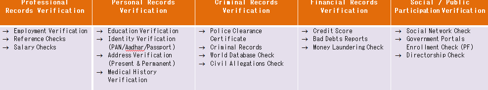 Our Key Back Ground Verification Elements are as follows.